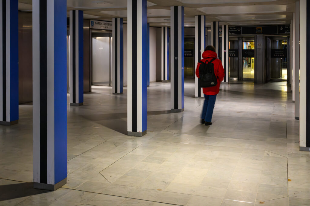 La Défense est très connue pour ses espaces extérieurs, elle recèle aussi des lieux moins connus qui peuvent donner des cadres photographiques plus originaux avec ou sans modèles. Nous arpenterons le hall de la gare RER/Métro (A, E, 1, etc.), les dessous de l’Arche, les collines de l’Arche  et quelques autres lieux.